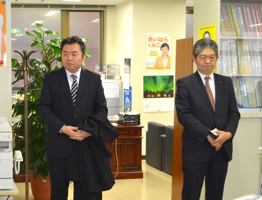 本日、北見市労連・鈴木執行委員長と、来年3月に行われる、北見市議会議員選挙に立候補予定の川島章則さんが来局しました。