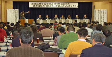 11月23日、北海道自治労会館で、道立試験研究期間が担う地域振興と基礎科学の役割について考えるシンポジウム~「道立試の未来を考える」が、道立試の未来を考えるシンポ実行委員会(三輪修彪実行委員長)の主催で開かれた。