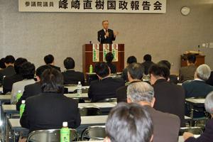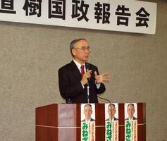 峰崎参議は、昨夜(12月7日)札幌市内で、国政報告会を開催し、国会が1月15日まで再延長され、新テロ特措法案は、憲法の3分の2条項で衆議院で可決される可能性が高いとの認識を示した。その際、福田総理への問責決議案が提出され、参議院で可決された場合は、即解散ということがありうると述べた。