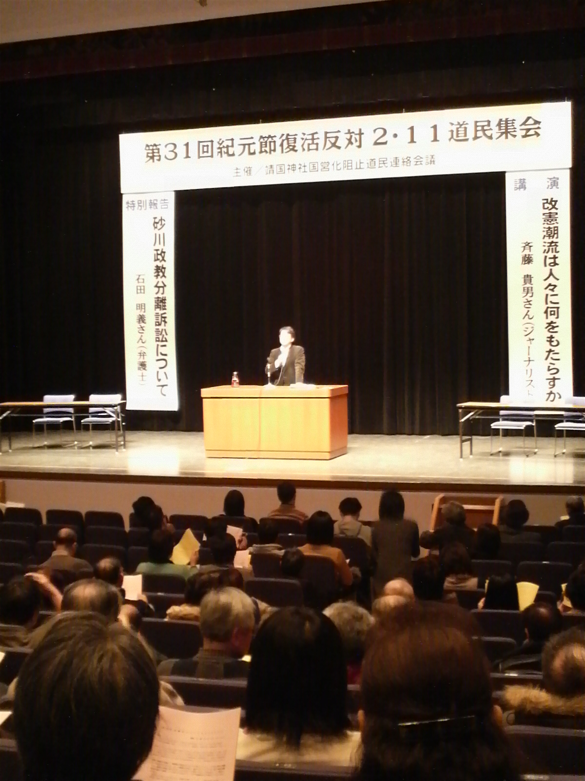 2月11日、第31回目となる「紀元節復活反対道民集会」が札幌市共済ホールで開かれた。