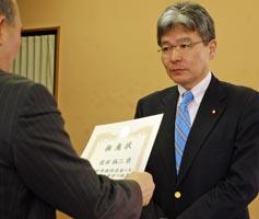 【画像】推薦状を交付で逢坂衆議。仲野衆議は用務で欠席、代理で秘書が受け取った。