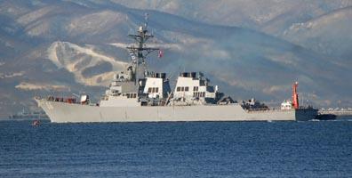 ↓ イージス艦「ジョン・S・マッケイン」が2月6日早朝、石狩湾新港に入港した。 ![]()