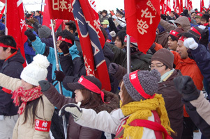 道北連絡協議会、議員の会、生活クラブ等がそれぞれ決意表明を行い、集会終了後、町内をデモ行進した。
