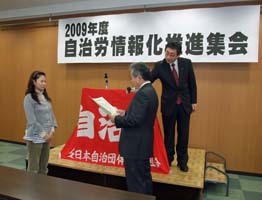 集会のなかで、第1回目ホームページコンクールの表彰が行われ、自作の部(ホームページの開設から更新まで行っている)で全道庁労連が入選した。
