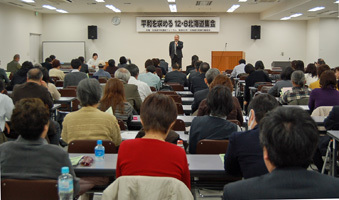 集会は、北海道平和運動フォーラム、戦後60周年・北海道行動実行委員会の主催で自治労会館4Fホールに200人が参加した。