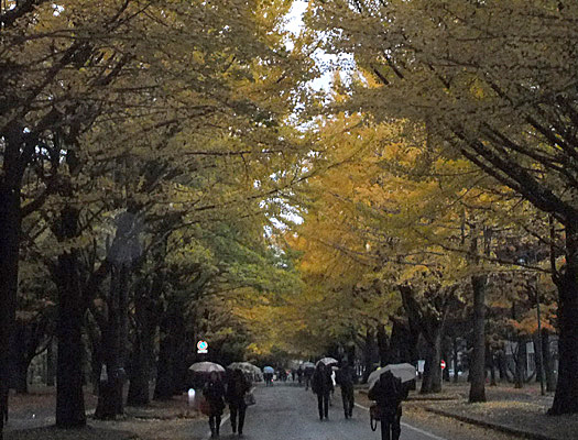 今日から11月。今年もあと2カ月になりました。 連日、テレビや新聞で紹介されていますが、今年も北大構内のイチョウ並木がきれいです。今日は天候が悪く、午後4時冷たい雨が降り出しました。寒いなかでも黄金のアーチを見る人たちでいっぱいです。