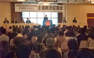 11月15日、釧路市キャッスルホテルにおいて、在沖縄米海兵隊の矢臼別移転実弾演習に反対する全道総決起集会が開かれた。