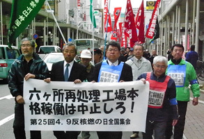 4月10日、25回目となる「反核燃の日」行動が青森市・青い森公園で開かれ、全体で1123人が参加した。。
