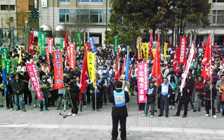 その後、全国からの報告として、①福井県平和環境人権センター、②宮城県五県平和センターからそれぞれ報告を受け、デモ行進を行った。