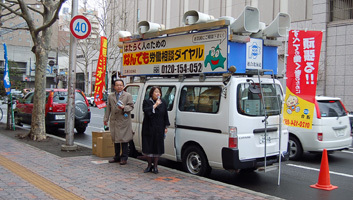 街宣では、札幌市議会議員の大島議員(西区)と三宅議員(南区)が、「残業手当なしで働かされていたり、突然解雇されることがある現状だ。派遣労働者の雇用の安定・公正な処遇を実現するため、労働者派遣法の改正を求めていく。働く仲間の権利をひとつでも守るため、どんなことでも気軽に相談してほしい」と述べ、連合の『なんでも労働相談ダイヤル』の利用を訴えた。