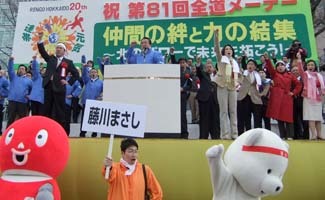 藤川まさしさんは、「全道をまわり、小泉改革の傷跡が大きいことを思い知らされる。地域格差、福祉の崩壊。働いている人が大変な状況になっている。『人を大切にする政治』をキャッチフレーズに、皆さんの力で成し得た政権を確固たる政権にしていきたい」と力強くあいさつした。