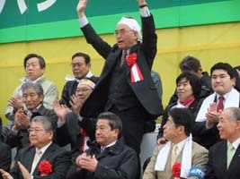 上田札幌市長は、「働く者・人を大切にする政治をめざしてきた。それに基づき変革は必ず実現しなければならない」と述べ「これまでの社会はどうだったのか。どんでん返しする政治ほど恐ろしいものはない」と話した。