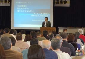 1947年5月3日に現憲法が施行されて今年63年目を迎えた。5月18日には『国民投票保護法』が施行され、『憲法調査会』への改憲案の提出が可能になる。『戦争をする国づくり』を進める動きを警戒し、この集会をきっかけに、平和を守り憲法の理念を生かす運動を展開していくことを確認した。