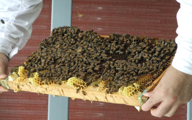 都市型養蜂は、自治労会館1階のラーメン店「月見軒」・㈲アイズの杉山社長がはじめたもの。