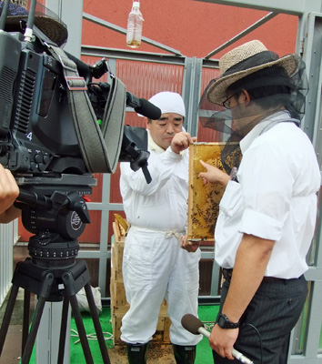 5月から、自治労会館屋上でで始まった都市型養蜂をHBCテレビが本日10時、取材に来ました。