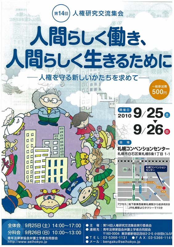 『人間らしく働き、人間らしく生きるために-人権を守る新しいかたちを求めて-』をテーマに、第14回人権研究交流集会実行委員会が主催する集会が9月25、26日の両日、札幌コンベンションセンターで開かれます。