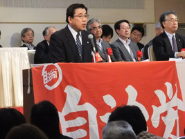 その後、当面する諸課題について述べ、最後に「政権交代後1年が経過した。われわれは、新政権に対して主張すべきは主張し、時には大げんかをしながらも、その歴史的とも言える新政権の役割・使命についてしっかり理解し、受けとめ、支えていかなければならない」と強調した。また、間近に迫った衆議院5区補選のたたかいや旭川市長選、来春の統一自治体選挙への支援と協力を呼びかけた。