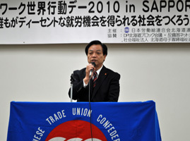 10月7日、札幌市・自治労会館で、「ディーセントワーク世界行動デー2010 in Sapporo集会」が開かれ、全体で約100人が参加した。