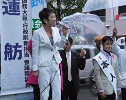 自治労道本部が推薦している中前茂之さん(衆議院北海道5区候補予定者)の街頭演説会が10月10日、札幌市の大谷地地区で行われ、弁士に蓮舫国務大臣が訪れた。