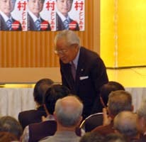 講演では、柳谷(やねだん)自治公民館長豊重哲郎さんから、「やねだんには北海道からも多くの公務員の方がくる。国は地域からというが、小さい自治区から変えていかなければならない」と自主財源を自治区でつくり、行政に頼らなくても自立できる地域づくりの実例をあげた。豊重さんからは、「タイムイズマネーとよく言うが、持論としてタイムイズチャンス!まさにチャンスをつかもうとしている木村さんを鹿児島からしっかり応援する」と話した。