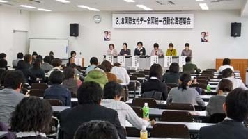 3月6日、自治労会館4階ホールで、3・8国際女性デー全国統一行動北海道集会が開かれ、約100人の組合員、市民が参加した。
