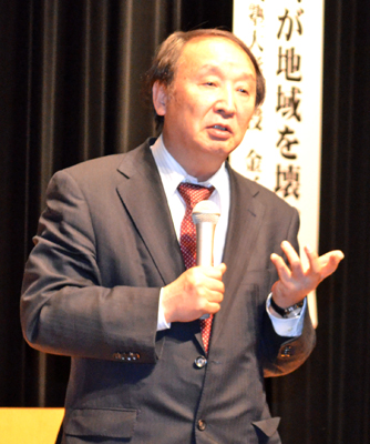 引き続き、「アベノミクスが地域を壊す!」と題して、金子勝・慶應義塾大学教授が講演した。
