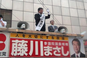 参議院議員選挙2日目の25日、藤川まさし候補は檜山管内、渡島管内で一次産業の振興を訴えながら遊説した。