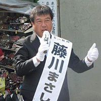 藤川まさし元気に遊説中!幸せも悲しみも分かち合う社会に