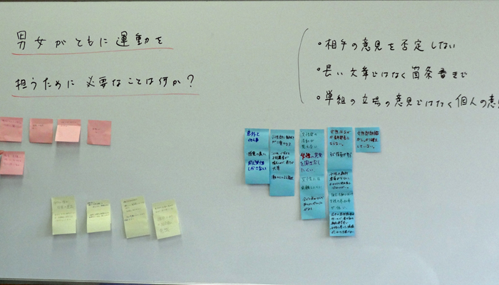 このように意見を出し合い、発表しあうことは、気づきが生まれ、課題や問題が明確になります。それは、すべての運動に共通することであり、「話し合う」ことの重要性が表れた「ワークショップ」になった。